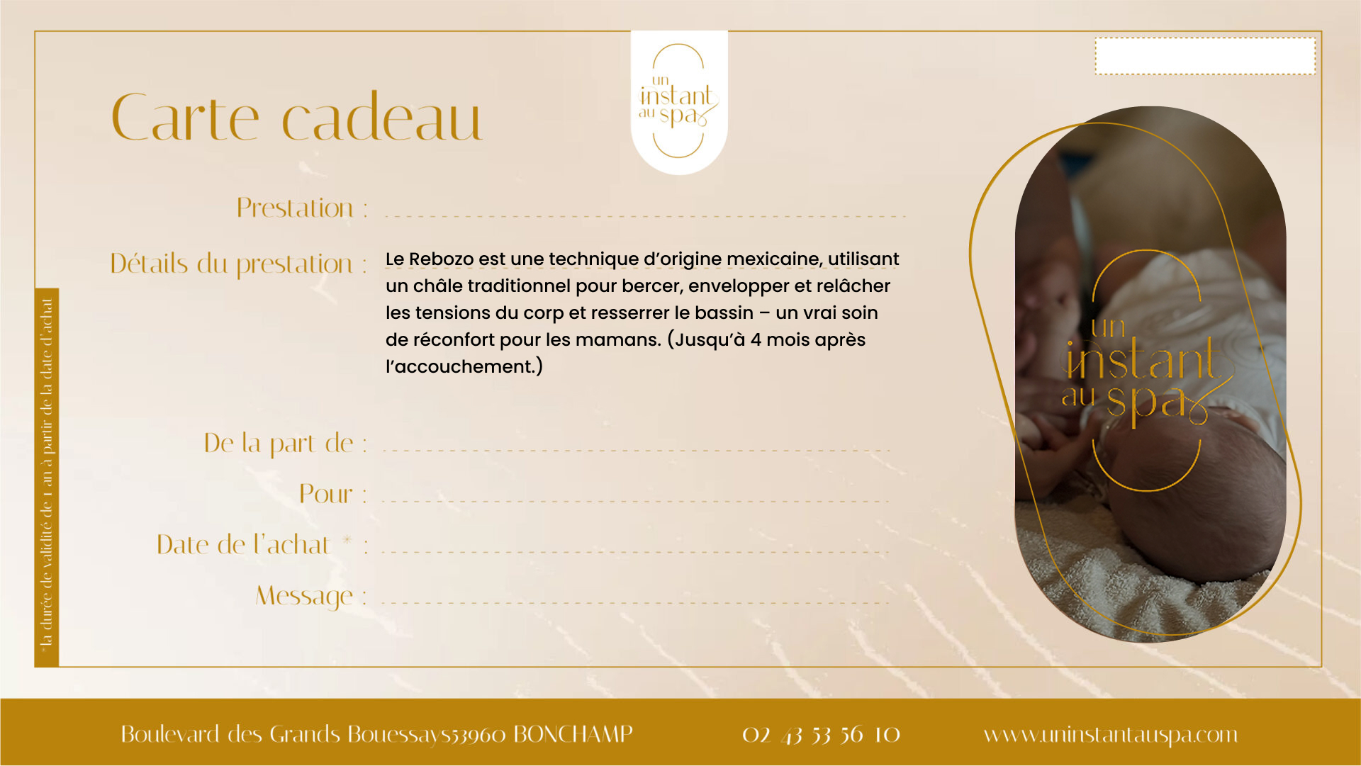 Le Rebozo est une technique d’origine mexicaine, utilisant un châle traditionnel pour bercer, envelopper et relâcher les tensions du corp et resserrer le bassin – un vrai soin de réconfort pour les mamans. (Jusqu’à 4 mois après l’accouchement.)